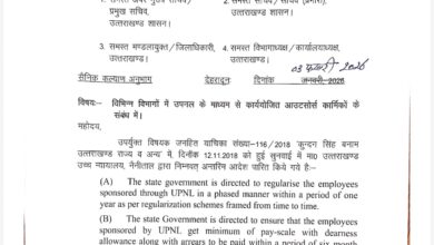 उत्तराखंड सरकार ने उपनल कर्मियों के लिए समान कार्य समान वेतन का आदेश जारी कर…